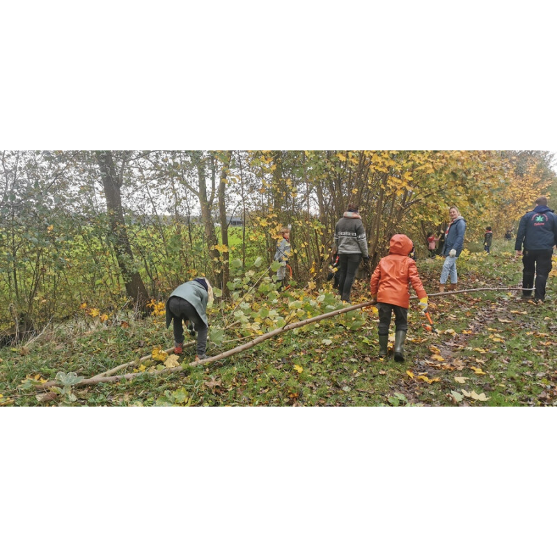 Boompjes uittrekken in de bosstrook, wilgenknotten en ander snoeiwerk.