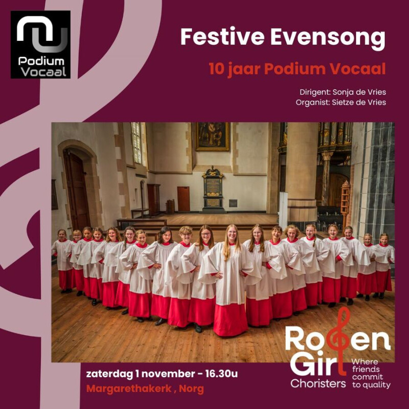 Op Allerheiligen, zaterdag 1 november 2025, organiseert Stichting Podium Vocaal een bijzondere Festive Evensong in de Margarethakerk in Norg. Het koor Roden Girl Choristers, dat onlangs haar 25-jarig jubileum vierde, zingt een ingetogen programma rond herdenken, stilte en schoonheid met Sietze de Vries op het hoofdorgel. Iedereen is welkom, of je nu gelovig bent of niet. De toegang is gratis, maar vanwege de beperkte capaciteit van maximaal 130 bezoekers geldt: vol is vol.