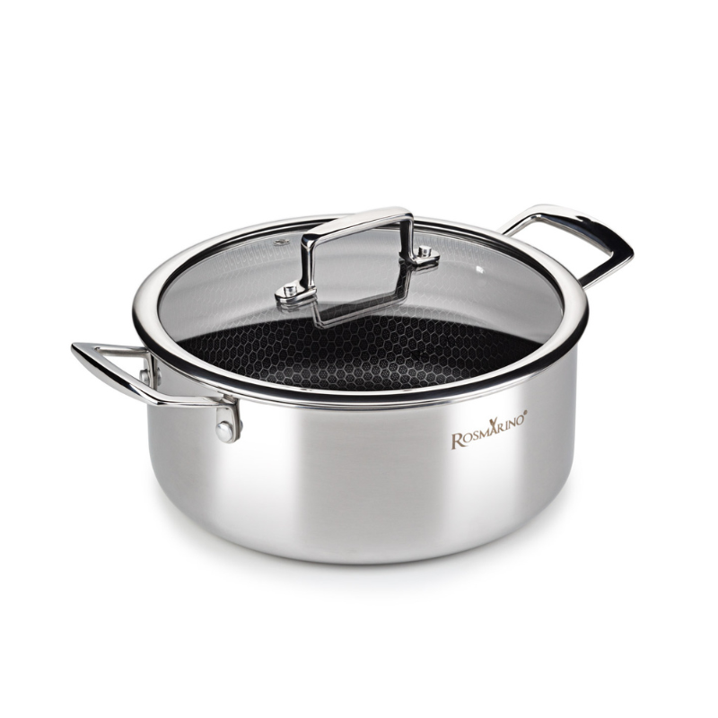 Met de Rosmarino HexaPRO Braadpan van 24 cm haalt u een professionele pan in huis die niet alleen sterk en stijlvol is, maar ook verrassend veelzijdig. Deze pan combineert roestvrij staal, een aluminium kern en een geavanceerde antiaanbaklaag tot een robuuste krachtpatser voor dagelijks gebruik. Of u nu een malse stoofpot maakt, groenten bakt of een ovengerecht bereidt – deze pan staat zijn mannetje.