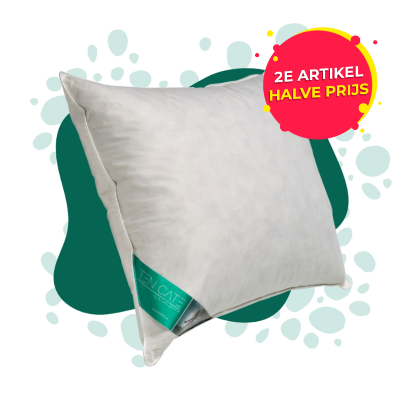 De tijk van het Ten Cate hoofdkussen is gemaakt van zacht en ademend katoen, wat zorgt voor een uitstekende luchtcirculatie. Dit houdt je hoofd koel en droog gedurende de nacht, terwijl het hypoallergene materiaal bescherming biedt tegen huisstofmijt. Hierdoor is het kussen ideaal voor mensen met allergieën.