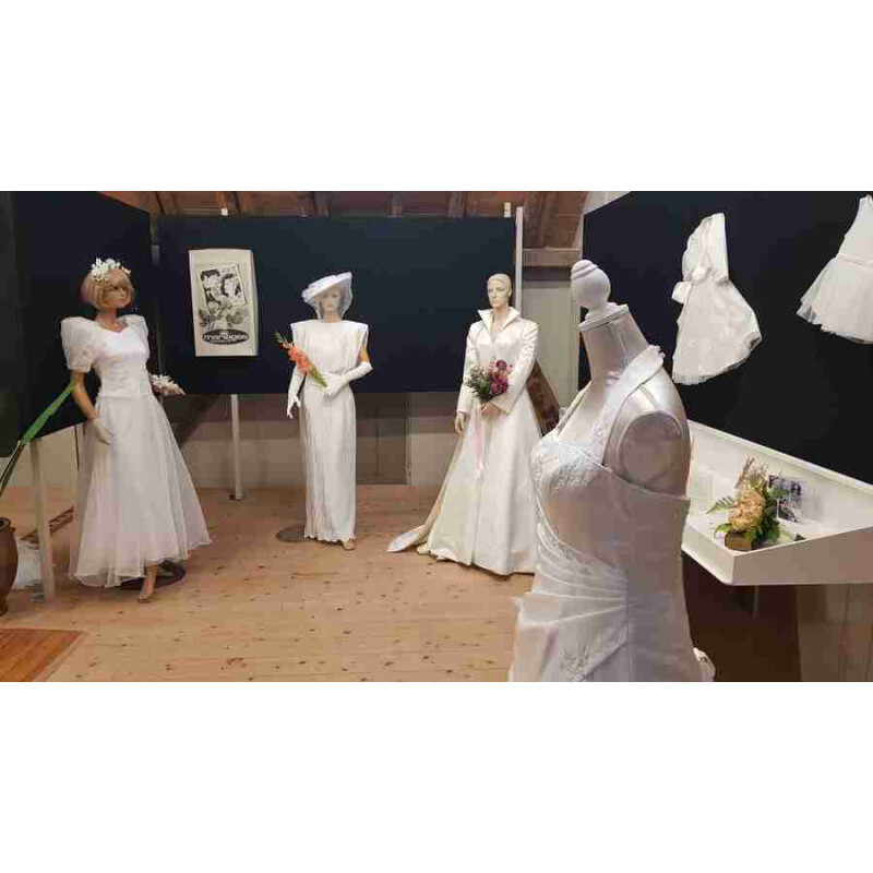 Daarbij is hun mooiste trouwfoto te zien en zo mogelijk ook de trouwkaart die werd gebruikt. In de maquetteruimte zijn jurken te zien uit de jaren ’70 in uiteenlopende kleuren, omdat dit toen meer de mode was.