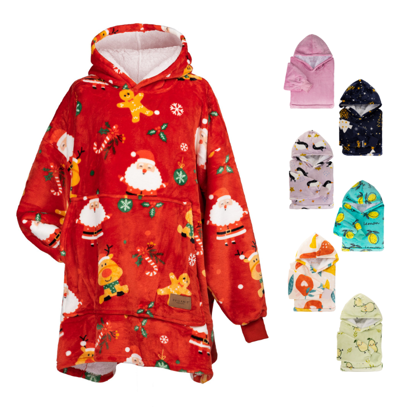 De handige capuchon houd je extra warm en de grote buidelzak is groot genoeg om je tv-afstandsbediening of snacks in op te bergen. Het is een kruising tussen een trui, een deken en een zachte donzen vacht. De binnenkant van de deken is van teddymateriaal, dit houdt de warmte van het lichaam goed vast. De buitenkant is van fleece stof en is super zacht en knuffelbaar dit maakt de Fleece Hoodie Ideaal voor een avondje bankhangen of om de kachel iets minder hoog te hoeven zetten!